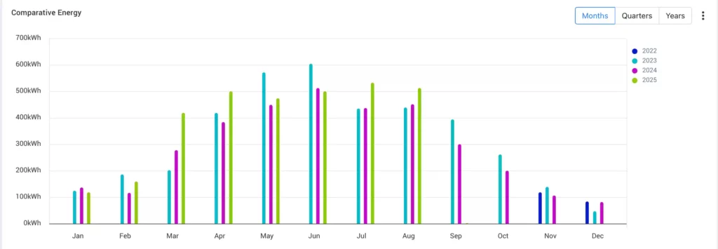 The UK continues to warm up with plenty of sunshine. August 2025 brings substantially more solar production than the last two Augusts with over 512 kWh of power generated.
