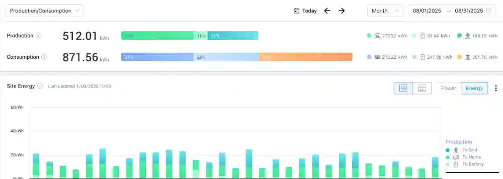 512 kWh Produced in August 2025 - More than prior years.